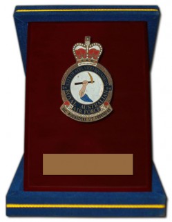 Etched and hand painted on a brass sheet with 0.40cm thick acrylic backing. Mounted on a wine-red square wooden shield and housed in a blue taffeta velvet box.