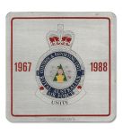 6 pcs set. Etched and hand painted on aluminium with velvet backing. Silver Aluminium finishing.