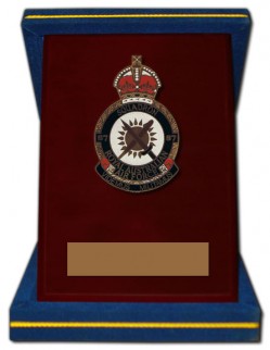 Etched and hand painted on a brass sheet with 0.40cm thick acrylic backing. Mounted on a wine-red square wooden shield and housed in a blue taffeta velvet box.