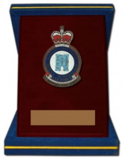 Etched and hand painted on a brass sheet with 0.40cm thick acrylic backing. Mounted on a wine-red square wooden shield and housed in a blue taffeta velvet box.
